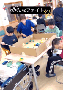 その後は、新聞紙で豆まきゲーム。誰が一番うまく投げられるかな~~??