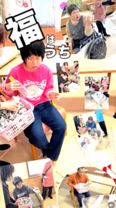 みんな大騒ぎの節分でした(お土産はかわいい豆袋でした)