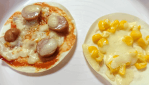 コーンや、ツナ、ウィンナーなどみんな好きな具をのせて焼きました。