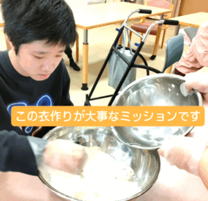 まずは、天ぷらの衣づくりをみんなで頑張ります!